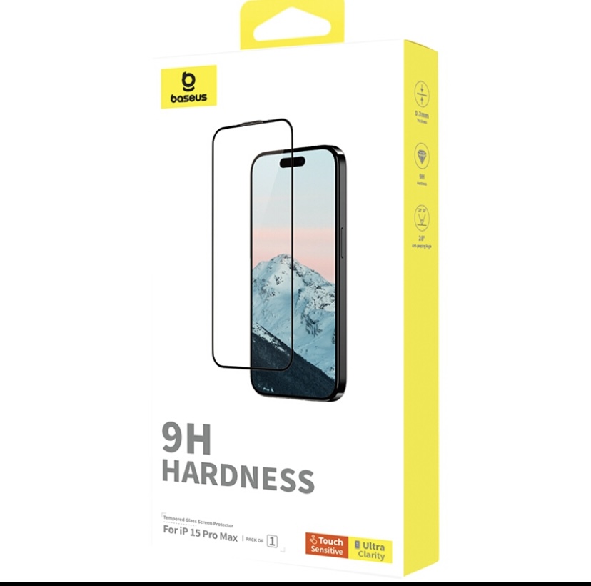 OS-Baseus Diamond Series Full-Coverage HD Tempered Glass Screen Protector voor iP 15 Pro Max, Clear (Pak van 1, met reinigingsset en EasyStick-installatietool)